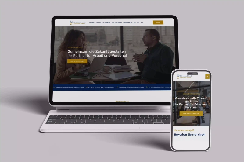 Für die Erstellung der Webseite von MGR Personal war das Ziel, eine moderne, professionelle und klar strukturierte Online‑Präsenz für den Personaldienstleister aus Landshut zu entwickeln. Die Seite sollte das Leistungsspektrum – insbesondere Arbeitnehmerüberlassung und Personalvermittlung – verständlich darstellen und gleichzeitig Vertrauen bei Bewerber:innen und Unternehmen schaffen. Zudem war es wichtig, dass Nutzer schnell und unkompliziert Informationen finden und Kontakt aufnehmen können.